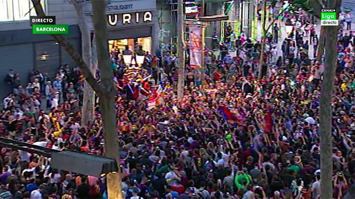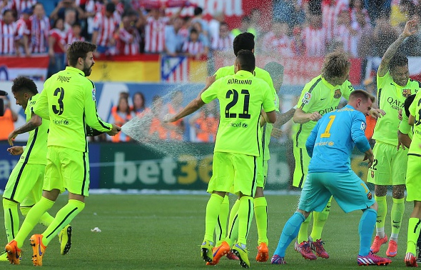 احتفل لاعبو برشلونة بتتويج فريقهم بالدوري الإسباني، بعد تغلب فريقهم على مضيفه أتليتيكو مدريد بهدف دون رد، ضمن منافسات الجولة السابعة والثلاثين من الليجا.