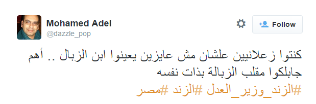 وقال Mohamed Adel “كنتوا زعلانيين علشان مش عايزين يعينوا ابن الزبال .. أهم جابلكوا مقلب الزبالة بذات نفسه”.