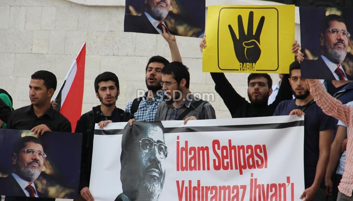 نظم عدد من الطلاب اليوم الخميس، تظاهرة احتجاجية أمام حرم جامعة إسطنبول المجاور لميدان بايزيد، لرفض أحكام الإعدام التي صدرت السبت الماضي، بحق الرئيس محمد مرسي، وعدد من قادة جماعة الإخوان المسلمين.