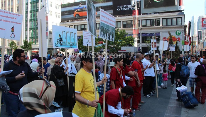 وذكرت وكالة الأناضول للأنباء أن مئات المحتجين تجمعوا واعتصموا بصمت أمام مبنى القنصلية المصرية في مونتريال، فيما جرت المظاهرة الثانية في “دونداس سكوير”، أشهر ساحة في مدينة تورنتو، وحاول المتظاهرون لفت أنظار الكنديين إلى قرارات الإعدام في مصر، حيث ارتدوا أزياء مثيرة للانتباه.