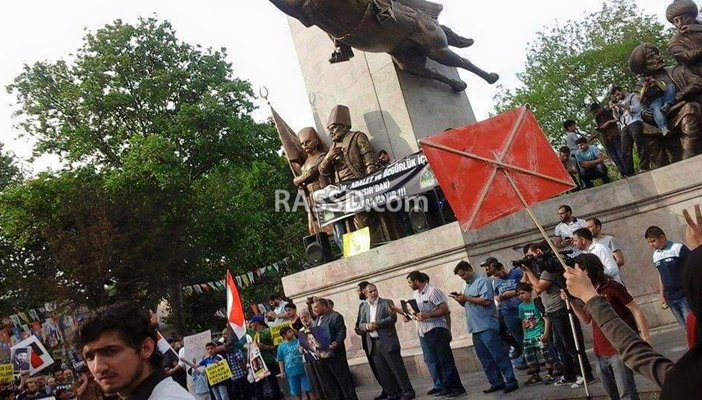 نظمت الجالية المصرية في تركيا، اليوم الأحد، فعاليتين لرفض أحكام الإعدام، الفعالية الأولى بمشاركة حركة نساء ضد الانقلاب في الخارج بالتضامن مع مؤسسة الإغاثة الإنسانية التركية “الإيهاها”، حيث تظاهرن أمام جامع أميننونو الكبير بمدينة أسطنبول، من أجل دعم أمهات شهداء عرب شركس والتنديد بأحكام الإعدام الواقعة على الرئيس محمد مرسي ومعارضي حكم العسكر.