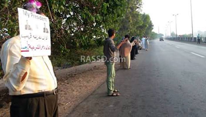نظم أهالي الدقهلية، صباح اليوم الإثنين، سلسلة بشرية، على طريق أجا- القاهرة، بمشاركة التحالف الوطنى لدعم الشرعية، وحركتي صوت الحرة، وشباب ضد الإنقلاب.