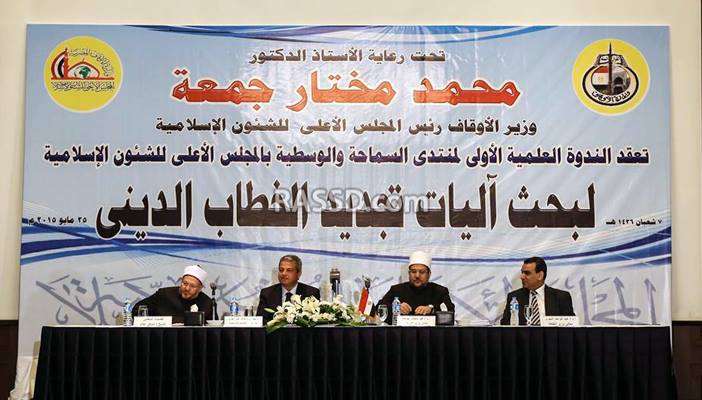 عُقد اليوم الاثنين مؤتمر وزارة الأوقاف لتجديد الخطاب الديني، بحضور نخبة من العلماء والوزراء والمفكرين، وذلك في ضوء خطة وزارة الأوقاف لنشر الوسطية والاعتدال، ومواجهة التطرف والإرهاب والعنف، والعمل على نشر سماحة الإسلام، وتصحيح المفاهيم الخاطئة.
