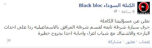 أعلنت صفحة الكتلة السوداء “بلاك بلوك” على موقع التواصل الاجتماعي “فيسبوك” في الساعات الأولى من صباح اليوم الثلاثاء، مسؤوليتها عن حادث حرق 5 أتوبيسات من النقل الداخلي بمحافظة الإسماعيلية.