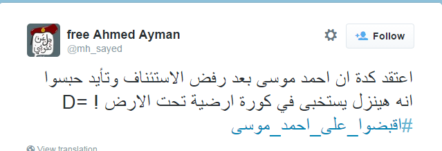 فيما سخر free Ahmed Ayman قائلا “اعتقد كدة إن أحمد موسى بعد رفض الاستئناف وتأيد حبسوا إنه هينزل يستخبى في كورة أرضية تحت الارض ! =D “.