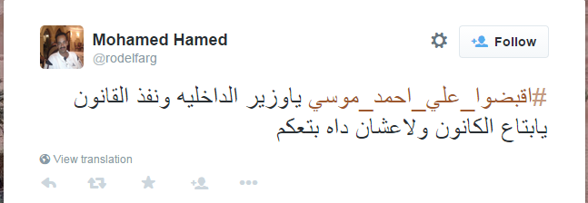 وقال Mohamed Hamed “ياوزير الداخليه نفذ القانون يابتاع الكانون ولاعشان داه بتعكم”.