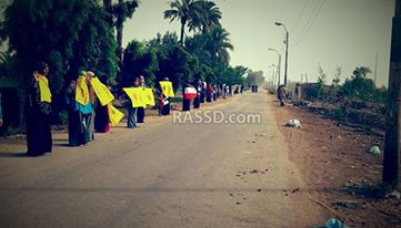 نظم أهالي قرية أم الرضا التابعة لمركز كفر البطيخ بدمياط، سلسلة بشرية، اليوم الخميس، للتنديد باستمرار الحكم العسكري، مطالبين برحيله، كما نددوا باستمرار اعتقال فتيات دمياط داخل السجون، مؤكدين على استمرار فعالياتهم حتى إسقاط النظام.