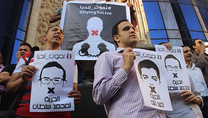 دشن النشطاء على مواقع التواصل الاجتماعي، هاشتاج “الحرية لمحمد سلطان”، شارك فيه العديد من االشخصيات العامة في اكثر من دولة، وتصدر وقتها قائمة تويتر، وحاز على مشاركات ضخمة من رواد الفيس بوك.