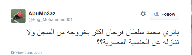 وتسائل AbuMo3az “ياتري محمد سلطان فرحان أكتر بخروجه من السجن ولا تنازله عن الجنسية المصرية؟؟“.