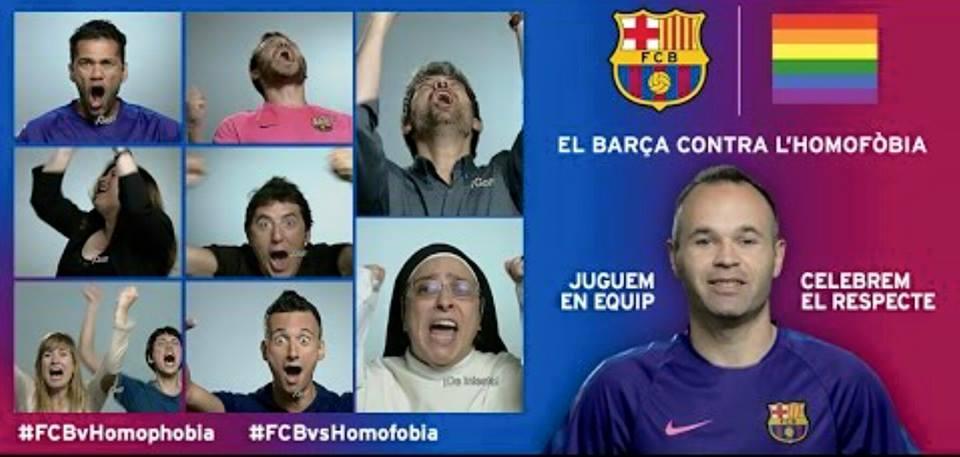 دشن نادي برشلونة الإسباني حملة إعلامية لدعم الشذوذ الجنسي، تحت عنوان “نلعب معا.. نحتفل معاً، نادي برشلونة ضد مناهضي الشذوذ الجنسي” (fcb Barcelona against homophobia)، وذلك عبر وسائل الإعلام التي يمتلكها النادي.