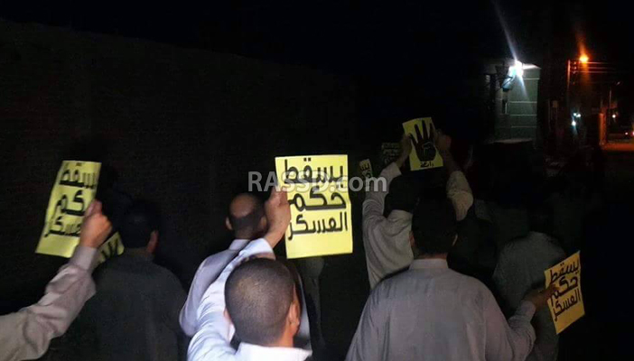 فيما شارك أهالي الحسينية في السلاسل البشرية، التي نظمها تحالف دعم الشرعية قبيل مغرب الأحد علي طريق الحسينية – صان الحجر رفضًا لحكم العسكر.