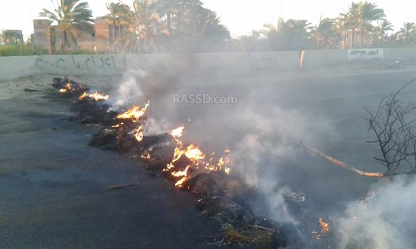 وبأسيوط، أشعل مجهولون النيران على الطريق السريع القاهرة- أسيوط الزراعي، بجوار مدخل قرية الميمون المحاصرة، ما أسفر عن توقف حركة السيارات لنصف ساعة.