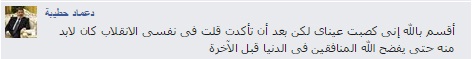 في ما علق على الصورة عماد حطيبة قائلا: “أقسم بالله إني كصبت عيناي لكن بعد أن تأكدت قلت في نفسي الانقلاب كان ﻻ بد منه حتى يفضح الله المنافقين في الدنيا قبل الآخرة”.