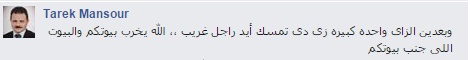 أما طارق منصور فتساءل: “وبعدين إزاي واحدة كبيرة زي دي تمسك إيد راجل غريب، الله يخرب بيوتكم والبيوت اللي جنب بيوتكم”.