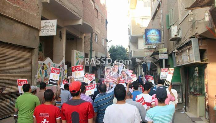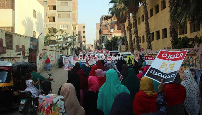 وطالب المشاركون في المسيرة بالقصاص الفوري لدماء الشهداء والإفراج عن كل المعتلقين في سجون الانقلاب ووقف الأحكام الهزلية، وشهدت المسيرة تفاعلا كبيرا من أهالي المنطقة.