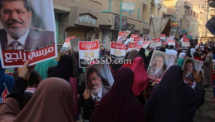 ورفع المشاركون شارات رابعة وصور الرئيس محمد مرسي ولافتات تحمل صور الشهداء والمعتقلين.