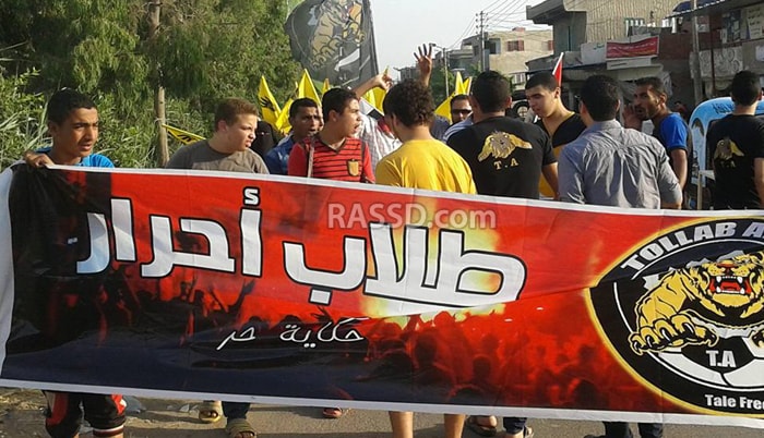 نظم التحالف الوطني لدعم الشرعية مسيرة انطلقت من أمام بيتزا كينج بمنطقة الجلاء بالمنصورة، وهتف المشاركون فيها ضد ما أسموه بـ”فساد السفاح ووعوده الكاذبة”، ورفعوا لافتات بعبارات #الخازوق و#سنتك_سودا.