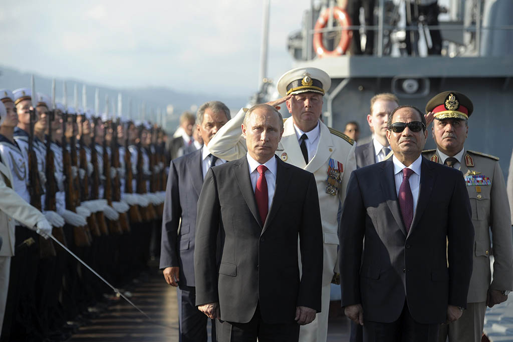وبعد زيارات السيسي الأفريقية، بدأ السيسي في زيارته لروسيا في محاولة منه لكسر الحصار الدولي المفروض عليه، ولاقي ترحيبًا واسعًا في روسيا، في ظل سياسة بوتين الداعمة للأنظمة القمعية، ومحاولة لكسبه إلى المعسكر الروسي.
