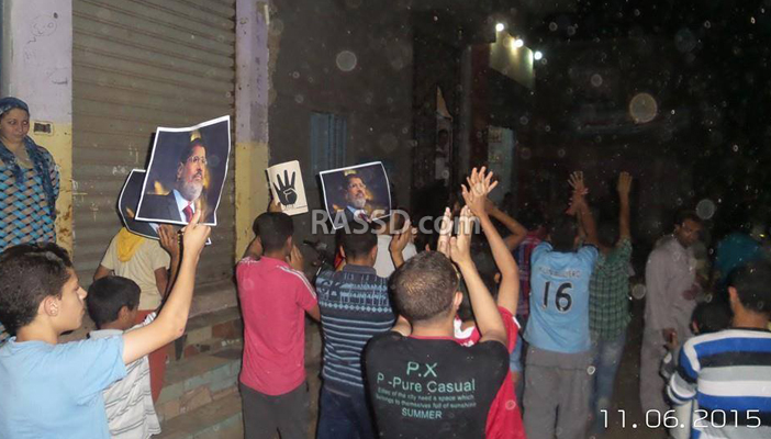 وردد المشاركون هتافات داعية للقصاص للشهداء، وطالبوا بالحرية لأبناء القرية، ورددوا هتافات منها ” مكملين ومش خايفين”، ورفعوا صورا للرئيس مرسي وشارات رابعة وسط تأييد الأهالي للثوار، وأعلام مصر.