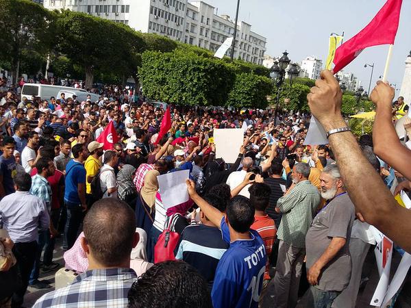 ورفع المشاركون خلال الوقفة، عددًا من الشعارات التي تتهم الحكومات السابقة، خاصة حكومة مهدي جمعة وعدد من مسؤولي الاتحاد التونسي للصناعة والتجارة والصناعات التقليدية بإهدار ثروات الشعب التونسي، مطالبين بإظهار حقيقة الثروات النفطية.