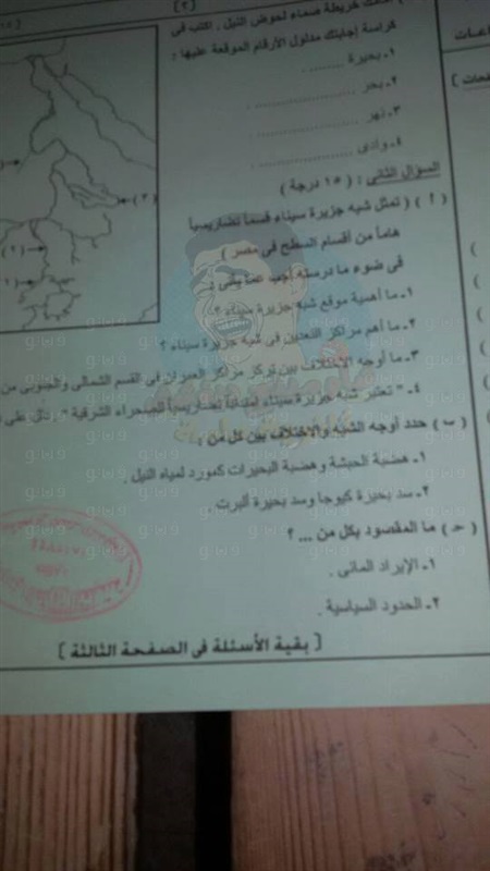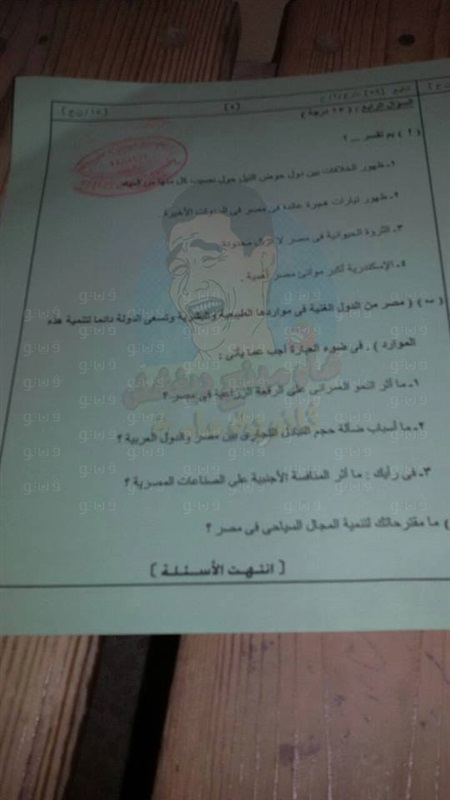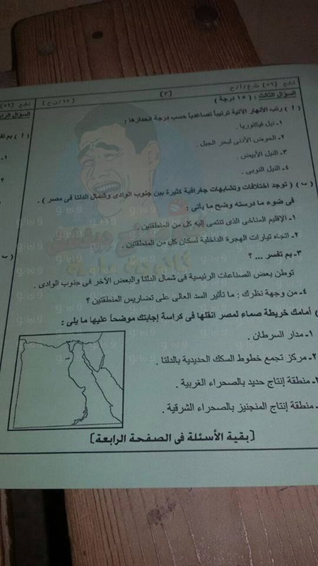 تداول نشطاء على موقع التواصل الاجتماعي “فيس بوك”، نموذج امتحان الجغرافيا لطلاب القسم الأدبي بالثانوية العامة، وذلك بعد مرور ربع ساعة من بدء الامتحان.
