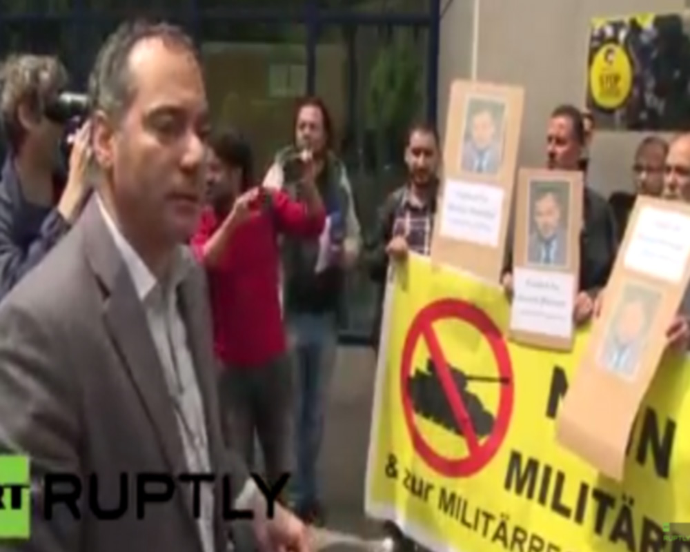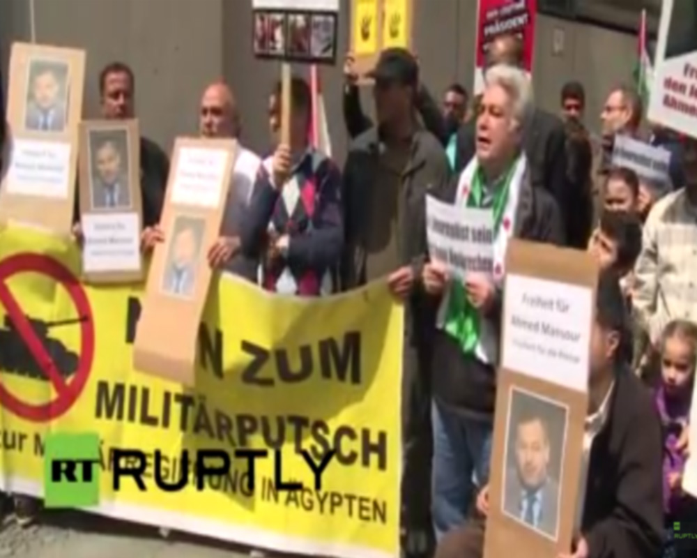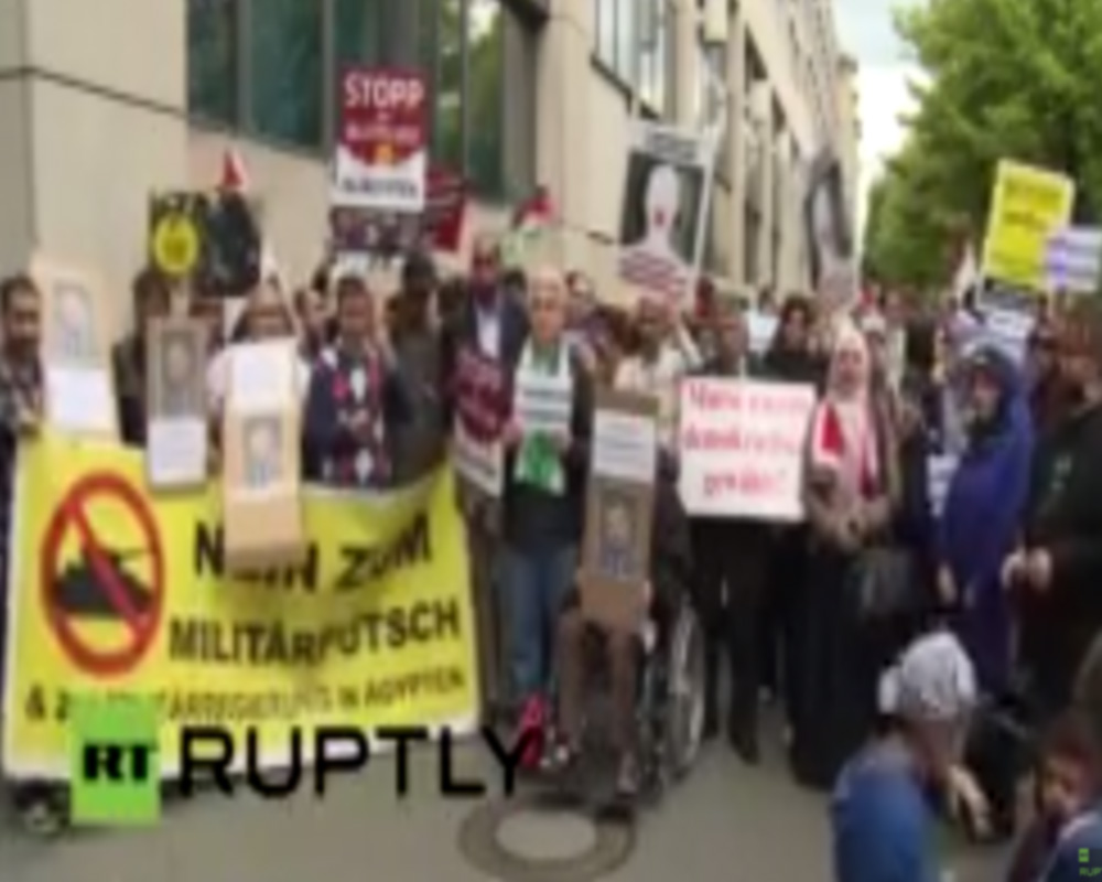 نظم الإئتلاف المصري الألماني لدعم الديموقراطية وقفة احتجاجية أمام مقر التحقيق مع الإعلامي المصري أحمد منصور في برلين.