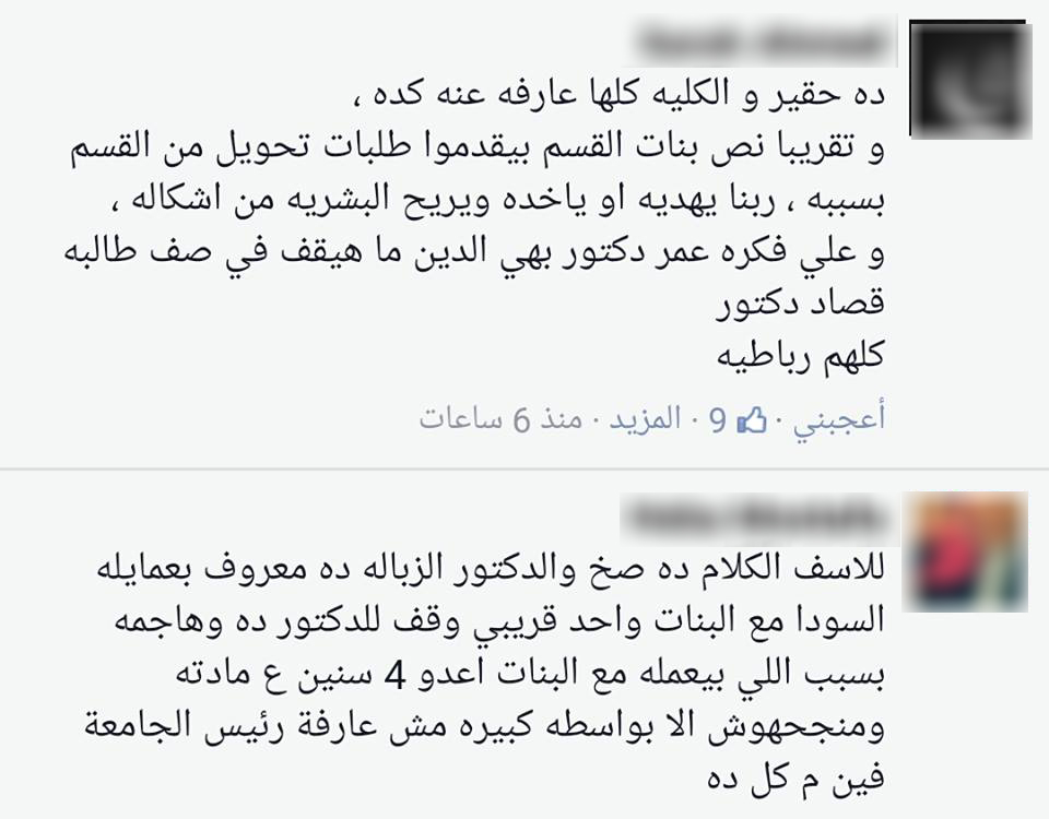 صفحاتهم على موقع التواصل الاجتماعي، يتحدثون عن “الشهاوي”، وسمعته السيئة، داخل الجامعة.