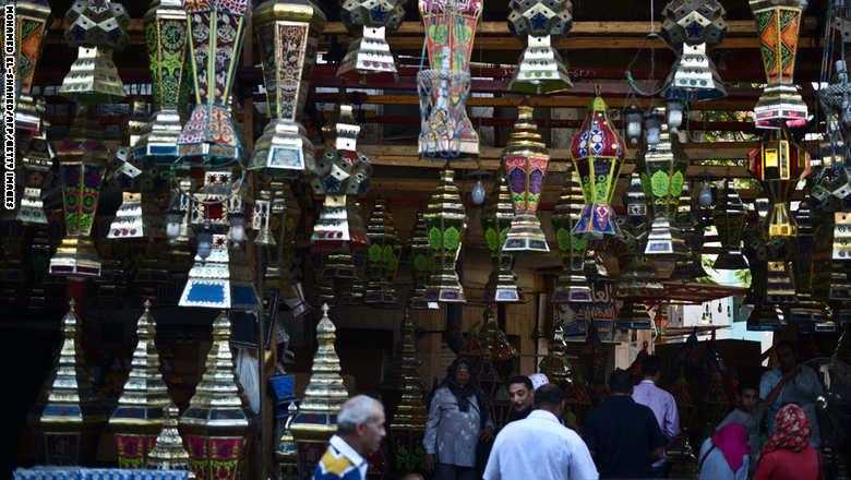 أما الأسواق المصرية فتغمر بالفوانيس التي هي رمز للشهر الكريم فيها .