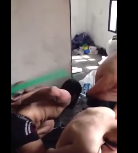 ويظهر المقطع، أحد عساكر السجن وهو يحمل عصا يضرب بها السجناء على أجسادهم العارية، وكانت أياديهم مقيدة من الخلف.