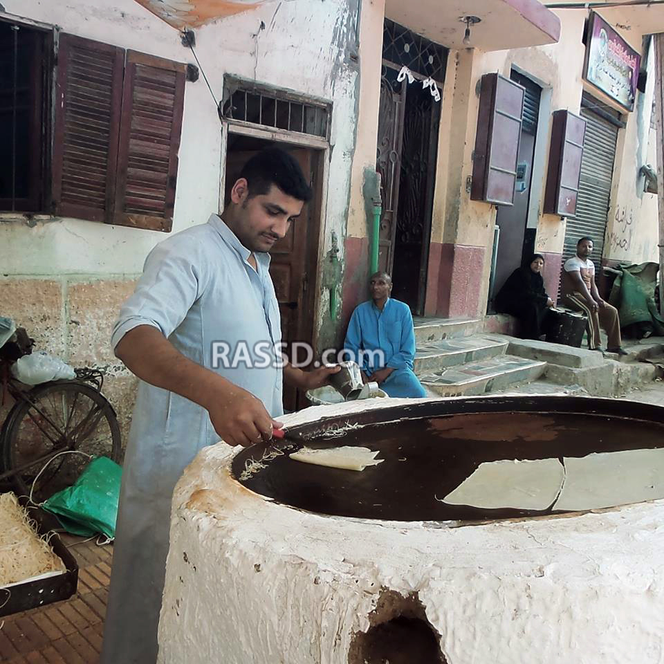 أحمد محمد، متزوج وعنده 3 أولاد، يعيش حياته ما بين الاعتماد على السيارة التي يشتغل عليها أجرة طول السنة وفي شهر رمضان يترك العمل عليها ويشتغل على الفرن البلدي الذي من خلاله يعمل الكنافة والقطايف.
