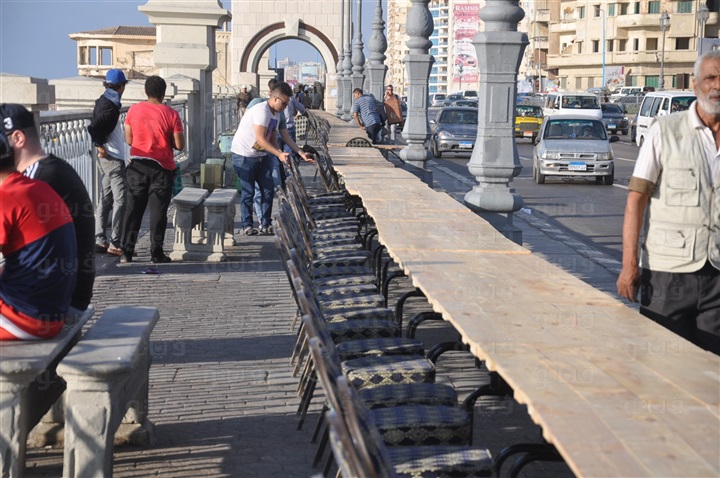 بدأ نحو 800 متطوع من الشباب السكندري، صباح اليوم الجمعة، بتجهيز أطول مائدة في العالم بطول 3.4 كم، على كورنيش الإسكندرية، لتسجيلها في موسوعة “جينيس” للأرقام القياسية، لتـبدأ من كوبري ستانلي، وحتى سان ستيفانو.