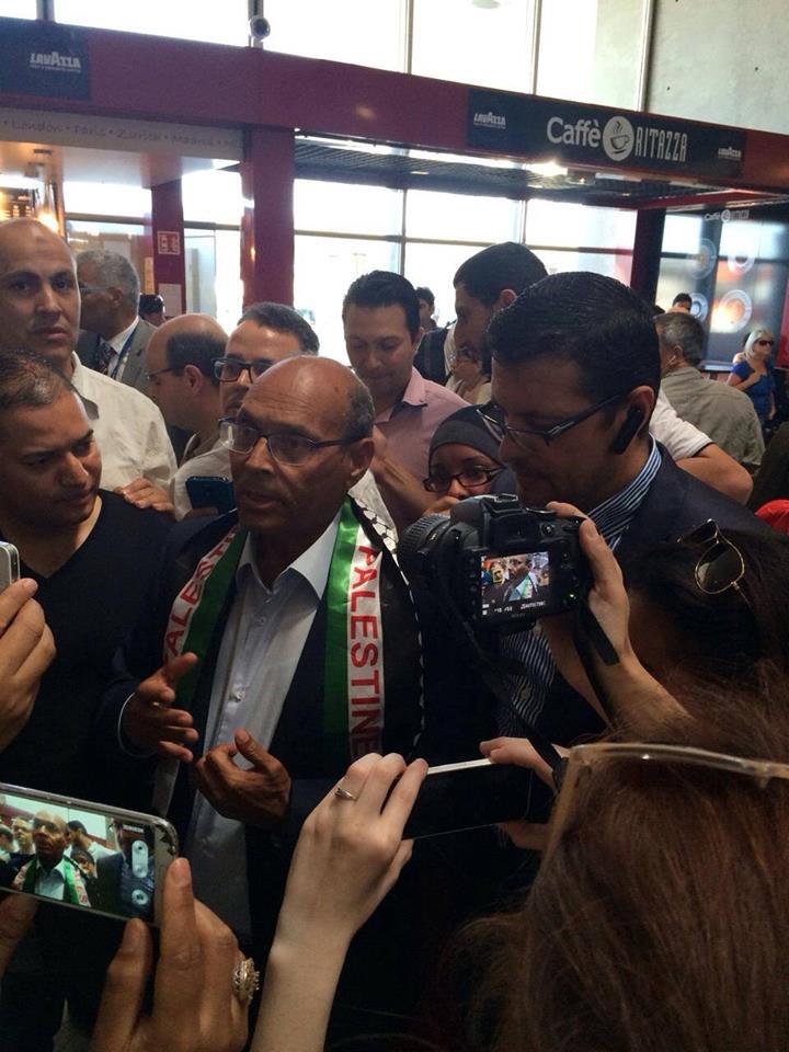 تناول رواد مواقع التواصل الاجتماعي صورا للرئيس السابق لتونس محمد المنصف المرزوقي، أثناء وصوله مطار باريس اليوم الثلاثاء، قادمًا من الأراضي الفلسطينية المحتلة، بعد أن تم احتجازه من قبل الكيان الصهيوني عقب مشاركته في أسطول الحرية 3 لكسر الحصار عن قطاع غزة.
