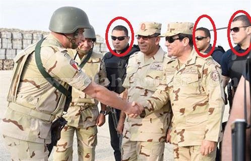 أثار وجود الحرس الخاص لعبدالفتاح السيسي بشكل مبالغ فيه خلال زيارته لسيناء، موجة من التعليقات وردود الأفعال؛ حيث علق النشطاء على استخدام السيسي لحراس وأمن خاص وهو بين قوات الجيش، متسائلين هل يخشي من أبنائه بالجيش؟.