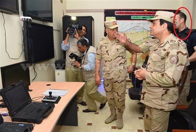 وظهر الضابط بزيه الخاص واقفًا خلف عبدالفتاح السيسي أثناء تجمع عدد من أفراد القوات المسلحة حوله للتصوير معه خلال جولته التفقدية لأفراد القوات المسلحة لمصافحتهم وتحيتهم على دورهم في صد الهجمات الإرهابية الأخيرة بالشيخ زويد.