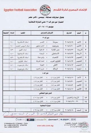 وحسب ما أعلنه الاتحاد- عبر موقعه الإلكتروني- فإن مباريات دور الستة عشر تبدأ يوم الأحد 19 يوليو بمباراة سموحة والنصر بالإسكندرية، ثم يوم الإثنين 20 يوليو تقام مبارة بتروجيت وألعاب دمنهور بالسويس.