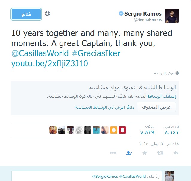 وودع المدافع سيرجيو راموس زميله إيكر كاسياس بعد رحيله رسميا لنادي بورتو البرتغالي عبر موقع التواصل الاجتماعي “تويتر” بفيديو أكثر من رائع وتمنى له تجربة ممتازة مع ناديه الجديد.