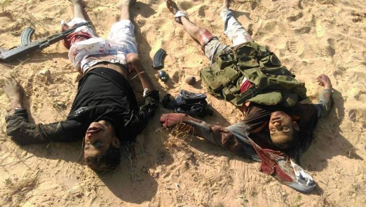 وأكد المتحدث باسم قوات الجيش، اليوم الأحد، قتل قوات الجيش لـ59 مسلحًا من ولاية سيناء، في حين أكد نشطاء أن الكثير منهم من أهالي سيناء، واعتقال 4 آخرين، بزعم انتمائهم للجماعات الإرهابية، وذلك خلال العمليات العسكرية التى نفذها الجيش، أمس السبت ثاني أيام عيد الفطر، بقرى رفح والشيخ زويد والعريش بمحافظة شمال سيناء.