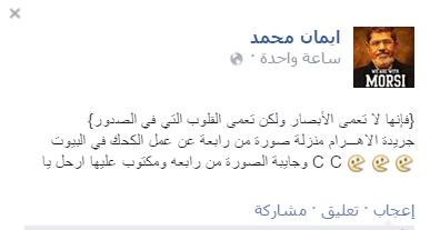 وقالت إيمان محمد، تعليقًا على الصورة: “فإنها لا تعمى الأبصار ولكن تعمى القلوب التي في الصدور”.