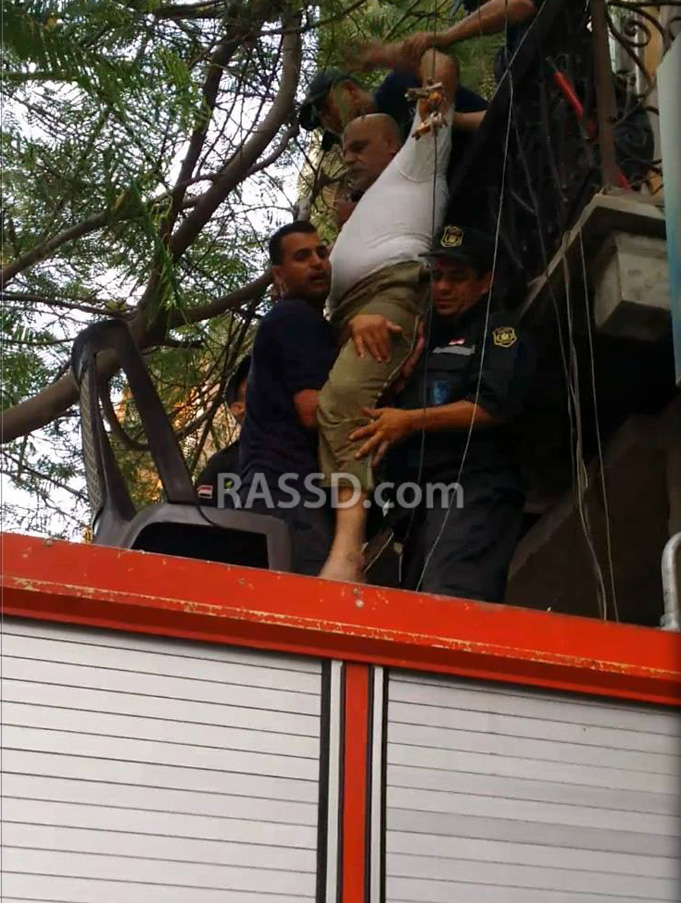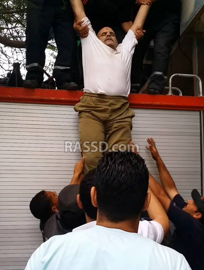 ووصلت المطافئ صباح اليوم، وتبين وقوع بعض أجزاء من المنزل على رؤوس بعض السكان في الأجزاء الداخلية من المنزل، مما اضطر المطافئ لإنزال السكان عبر سلالم سيارات المطافئ.