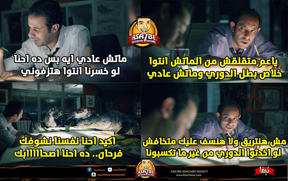 واستعانت صفحات “أساحبي” و”ميدياوي” و”فاصل مش إعلامي”، بمشاهد من أفلام ومسلسلات مشهورة للسخرية من نتيجة المباراة، نرصد لكم أبرزها.