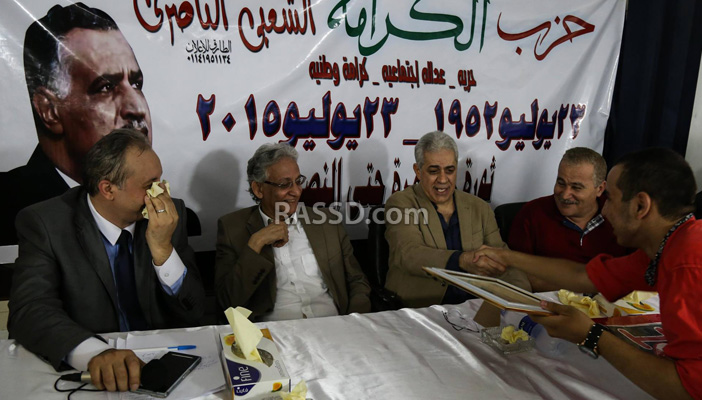 نظم حزب الكرامة بمقره بالدقي إحتفالية بالذكرى الثالثة والستين لثورة 23 يوليو، بحضور حمدين صباحي مؤسس حزب التيار الشعبي تحت التأسيس، والمرشح الرئاسي السابق.