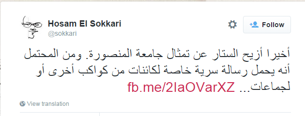 فيما قال Hosam El Sokkari: “أخيرًا أزيح الستار عن تمثال جامعة المنصورة. ومن المحتمل أنه يحمل رسالة سرية خاصة لكائنات من كواكب أخرى أو لجماعات”.