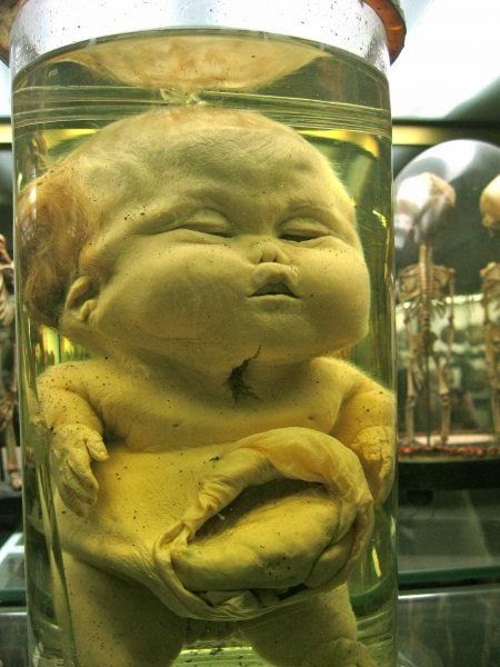 هذه المجموعة المروعة من المواد البشرية تقدر بنحو 6,000 قطعة، وتشمل أوعية وبرطمانات تحتوي على سوائل بها الأجزاء البشرية المشوهة والرضع والتوائم الملتصقة، وهناك نماذج من الشمع لرؤوس بشرية بها عيوب خلقية غريبة، وهناك أيضًا أوعية بها عقول بشرية محفوظة في محلول كيميائي خاص.