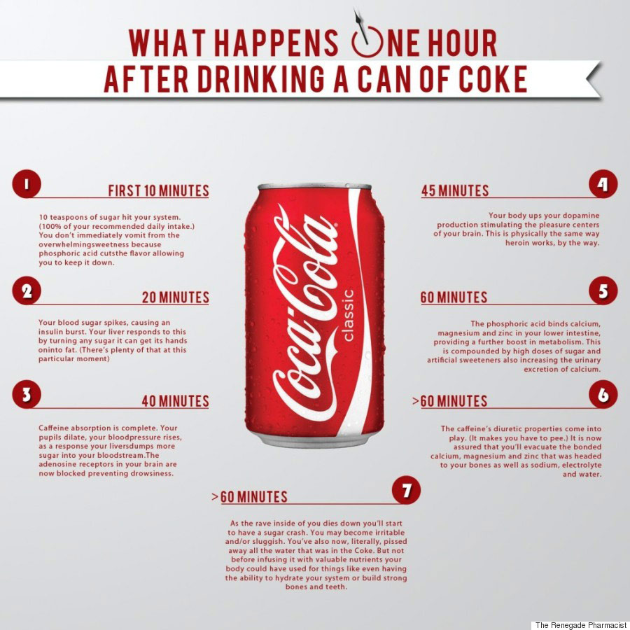 أجرى صيدلي بريطاني يدعى "نيراج نايك" بحثا حول تأثير المشروبات الغازية على جسم الإنسان خلال 60 دقيقة