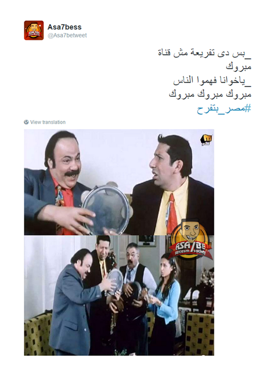 كما دشن عدد من النشطاء هاشتاج “مصر بتتقرطس”، ردًا على هاشتاج “مصر بتفرح”؛ لتوضيح حقيقة التفريعة الجديدة، وتكذيب إشاعة أنها قناة جديدة بجوار قناة السويس.