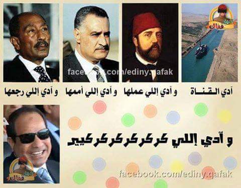 مع اقتراب موعد افتتاح تفريعة قناة السويس الجديدة، والحملة الإعلامية الضخمة التي دشنها النظام للاحتفال بالتفريعة، شهدت مواقع التواصل الاجتماعي موجة من التعليقات الساخرة علي افتتاح القناة، وتحويل تفريعة طولها 36 كيلو إلى قناة جديدة.