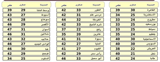 تواصل درجات الحرارة إرتفاعها غدًا بشتى محافظات الجمهورية؛ لتتخطى حاجز الـ45 درجة مئوية في بعض محافظات الوحة القبلي، وتصل إلى 40 درجة في القاهرة وبعض المحافظات.