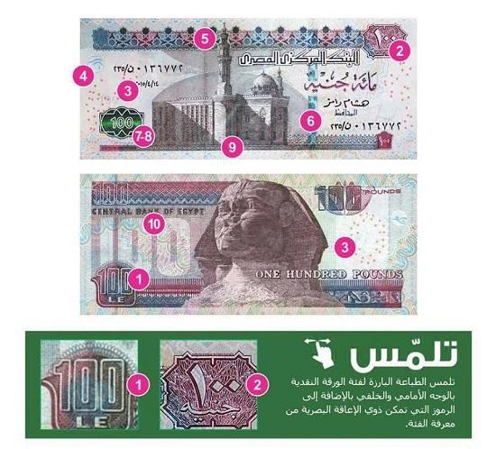 أشاد المجلس القومي لشئون الإعاقة، بمبادرة البنك المركزي المصري بإضافة رموز بارزة بأرقام فئة ورق العملة على وجهيها الأمامي والخلفي؛ بهدف تمكين المكفوفين من معرفة فئة الورقة النقدية بأنفسهم ليسهل عليهم التعامل بها؛ حيث أصدر البنك المركزي الأوراق النقدية الجديدة فئة 100 جنيه و200 جنيه متضمنة هذه الإضافات.