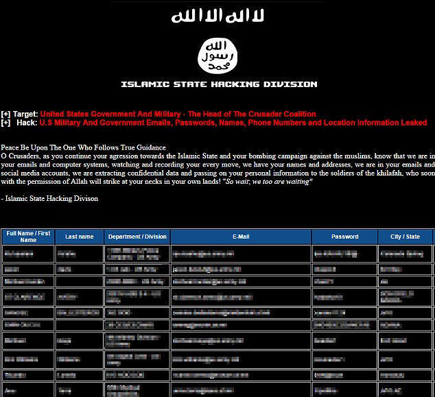 وتابع التنظيم في رسالة الاختراق التي تقول: “نعمل على استخراج البيانات السرية ونقل المعلومات الشخصية الخاصة بكم إلى جنود الخلافة، الذين سرعان ما بإذن الله سوف يدقون أعناقكم في أراضيكم”.
