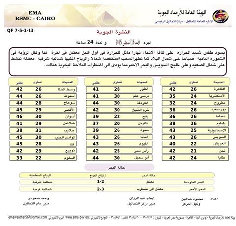 وإليكم بيان بدرجات الحرارة المتوقعة اليوم بمحافظات الجمهورية: